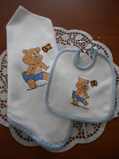 Por agora dei descanso aos pincéis e voltei às minhas xxx, estou a fazer um conjuntinho para um menino que vai ser batizado esta semana, depois passo para vos mostrar..